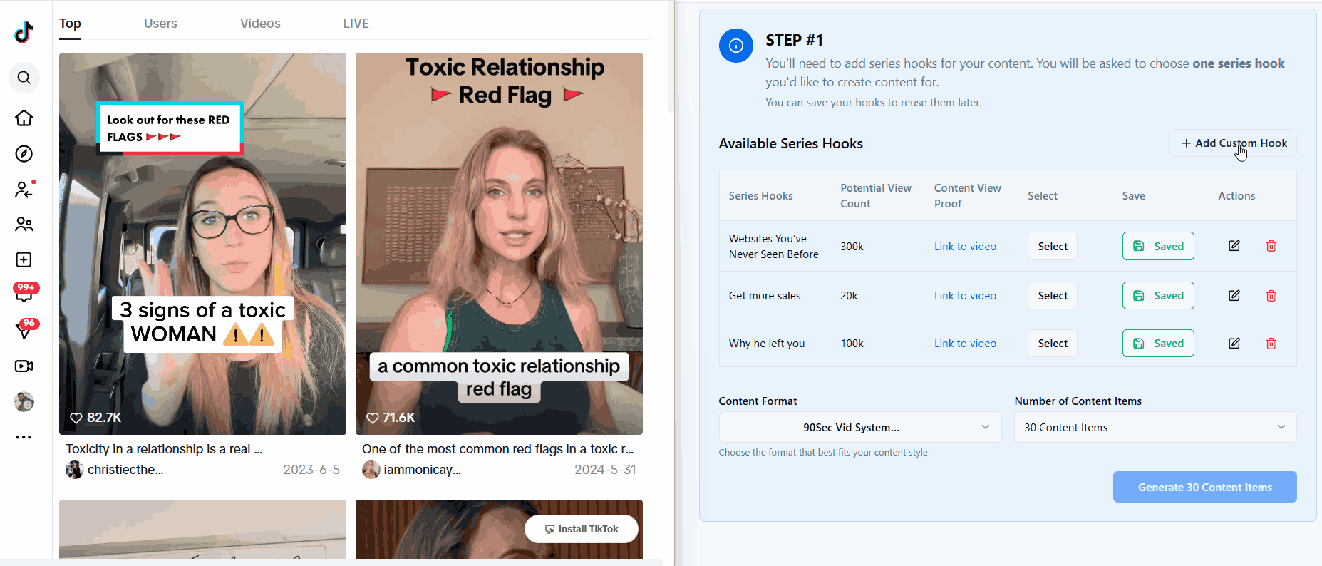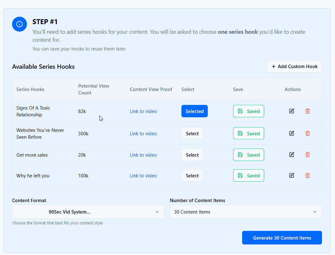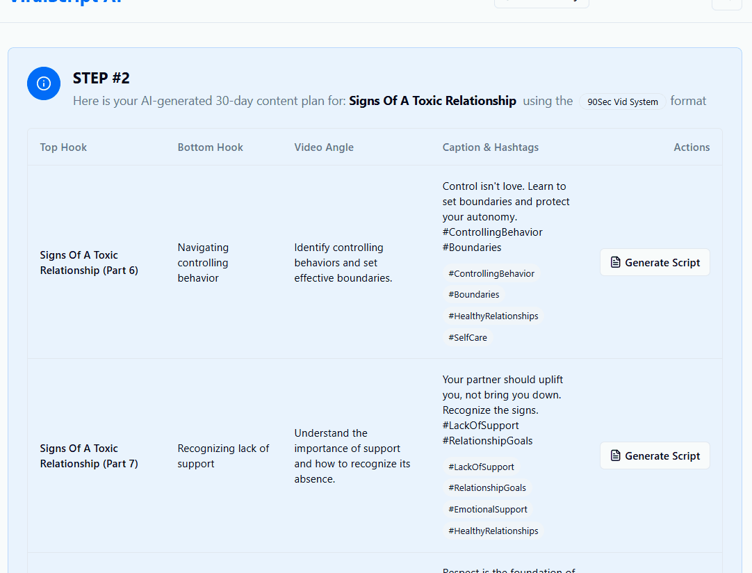One-Click generation of complete video scripts, optimised for short form platforms (TikTok, Reels, Youtube Shorts), each script includes scroll-stopping hooks, emotional triggers and calls to action.