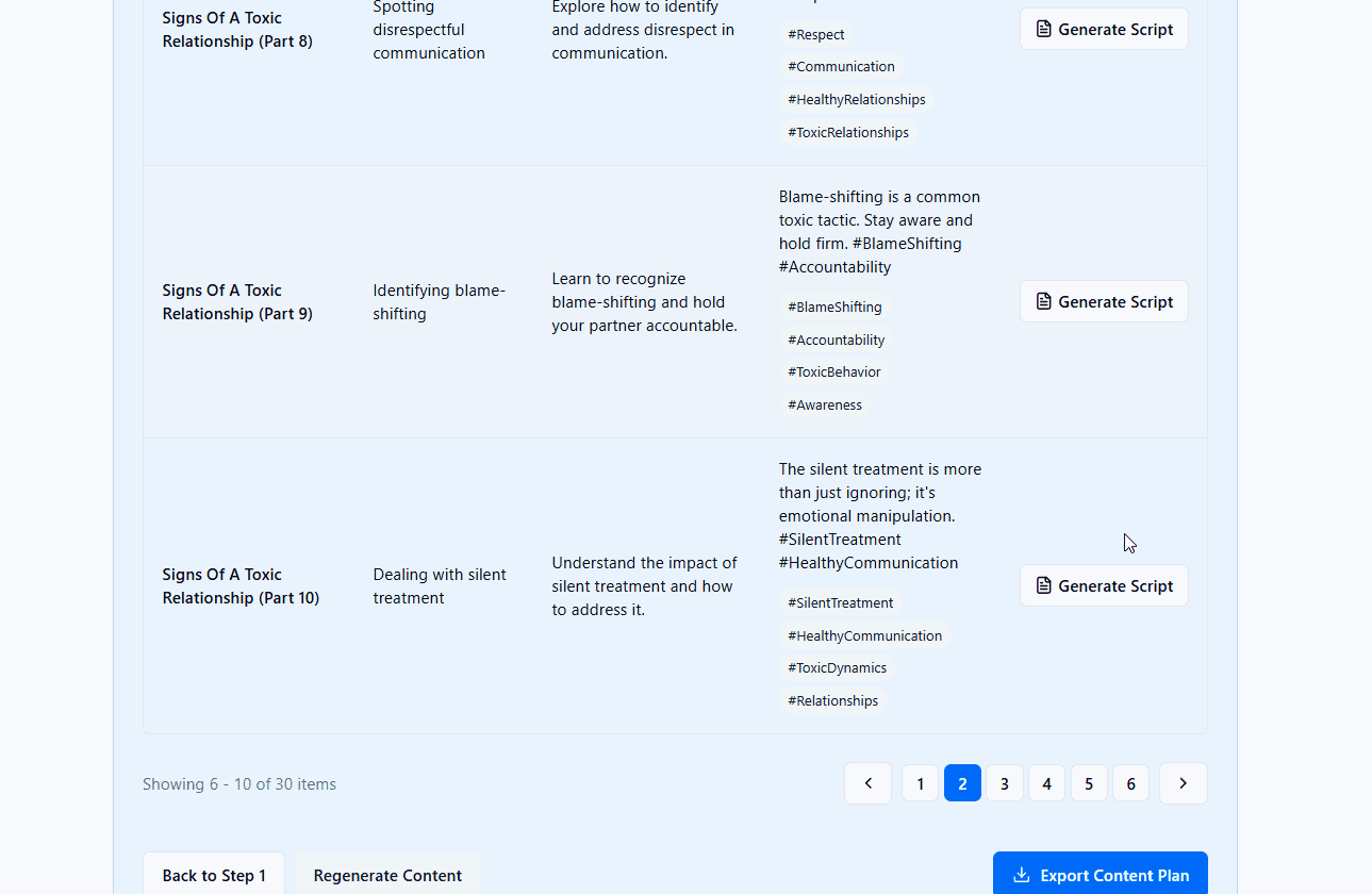 You don’t need to be. This is literally plug-and-play. Enter a hook idea, click generate, and boom you’ve got 30 days of scripts. Export them. Film. Post. Done.