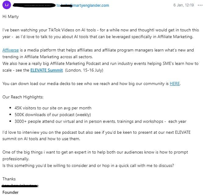 I had an email from a corporate professional who saw my TikTok video and thought "I understand what this dude is saying I need him to talk at my event of 250+ people". I have never advertised or tried to land a public speaking gig, yet...