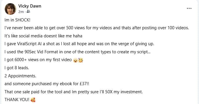ViralScript AI uses my personal frameworks that has gotten me seen by over 20,000,000 people.