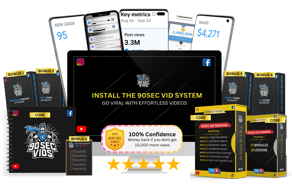 5 Different powerhouse formats to utilise for your business including the famous 90Sec Vid Format designed by viral marketer over 20,000,000+ views.